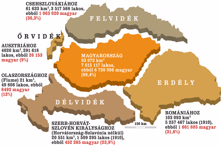 After 1918, Felvidék, Őrvidék, Délvidék, and Erdély were detached from Hungary
