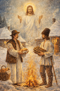 Soon, the Ruthenian also reached the end of the village. The Lord was waiting for him, too, under the crucifix. The Ruthenian greeted Him and asked the Lord to assign him his work and grant him his fortune.